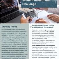 线上/线下工作坊:3-4次主题讲座,包括虚拟股票投资平台操作,路演及投资报告撰写技巧,以及由专业老师分享股票投资基础,资产组合管理,风险管理等内容,投资策略路演也将得到专业导师点评,干货满满。讲座线上线下同步开放,参与方式灵活,不受地域限制。
